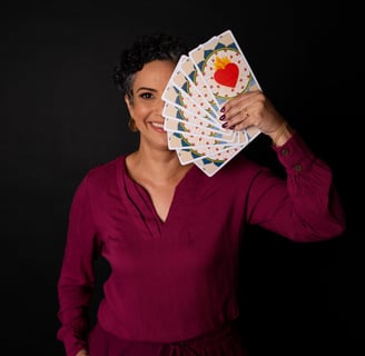 Ela é a fundadora da mentoria "Lua Vermelha", um programa transformador que auxilia mulheres a reconectarem-se com sua verdadeira essência, promovendo a cura de si mesmas e das pessoas ao seu redor.
